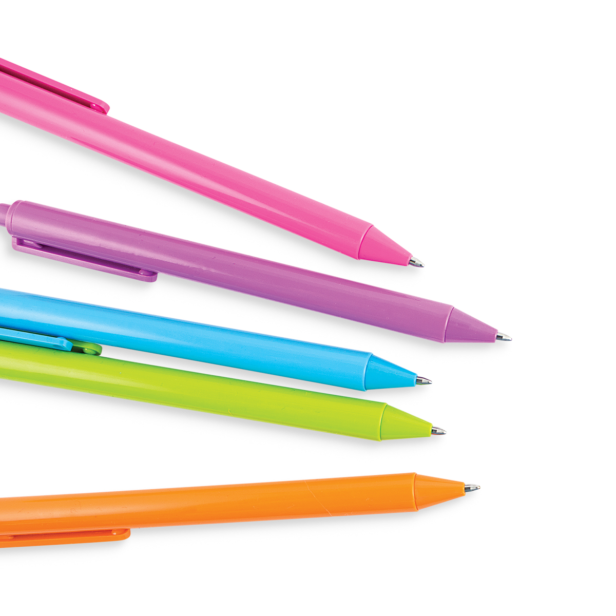 With the Bright Writers Pens you can write and even draw in 10 different colors. Bright Writers have a really nice, fine, ballpoint tip for smooth and detailed writing. No caps here either, these are click pens.