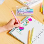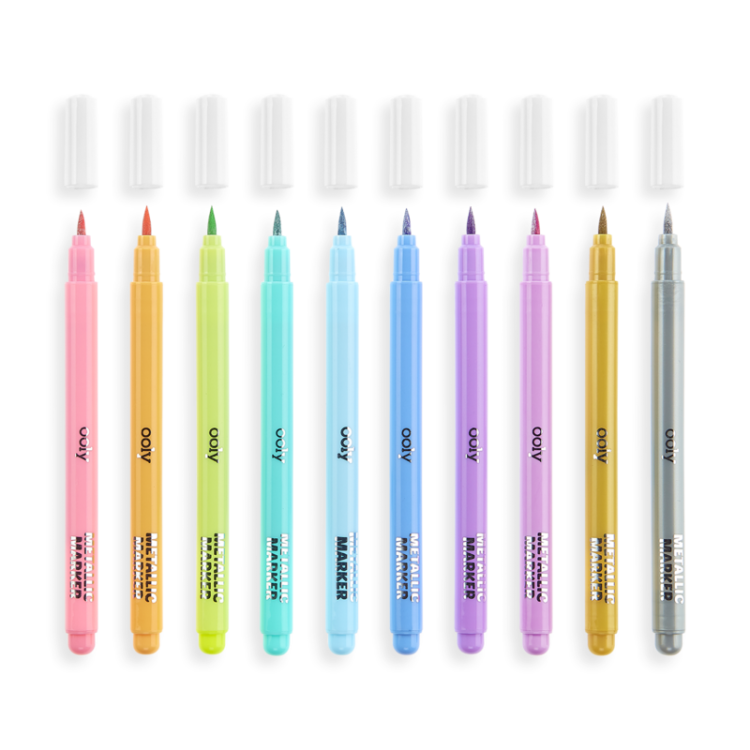 Brush tip matallic markers. Bright sparkling colors are perfect for use on light or black paper.