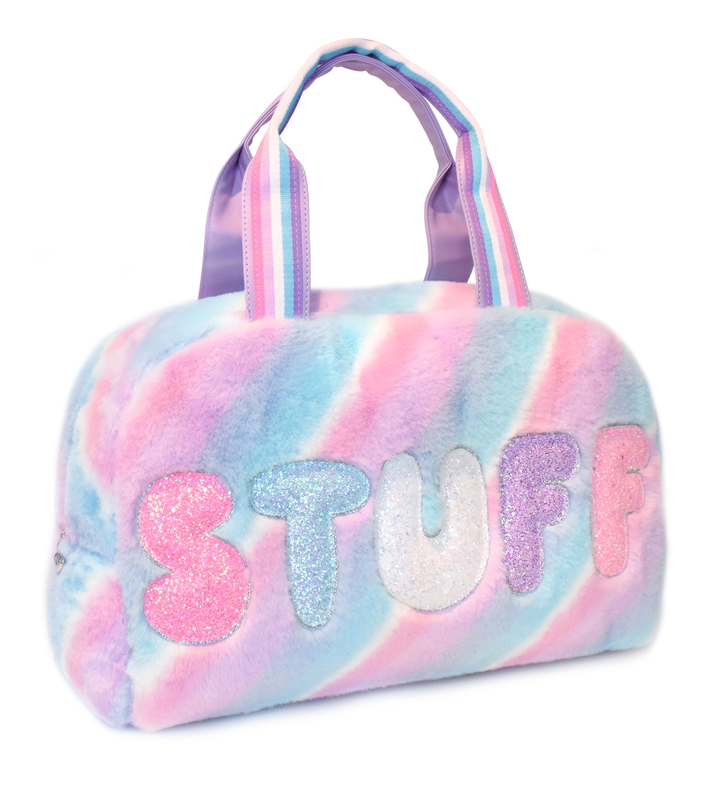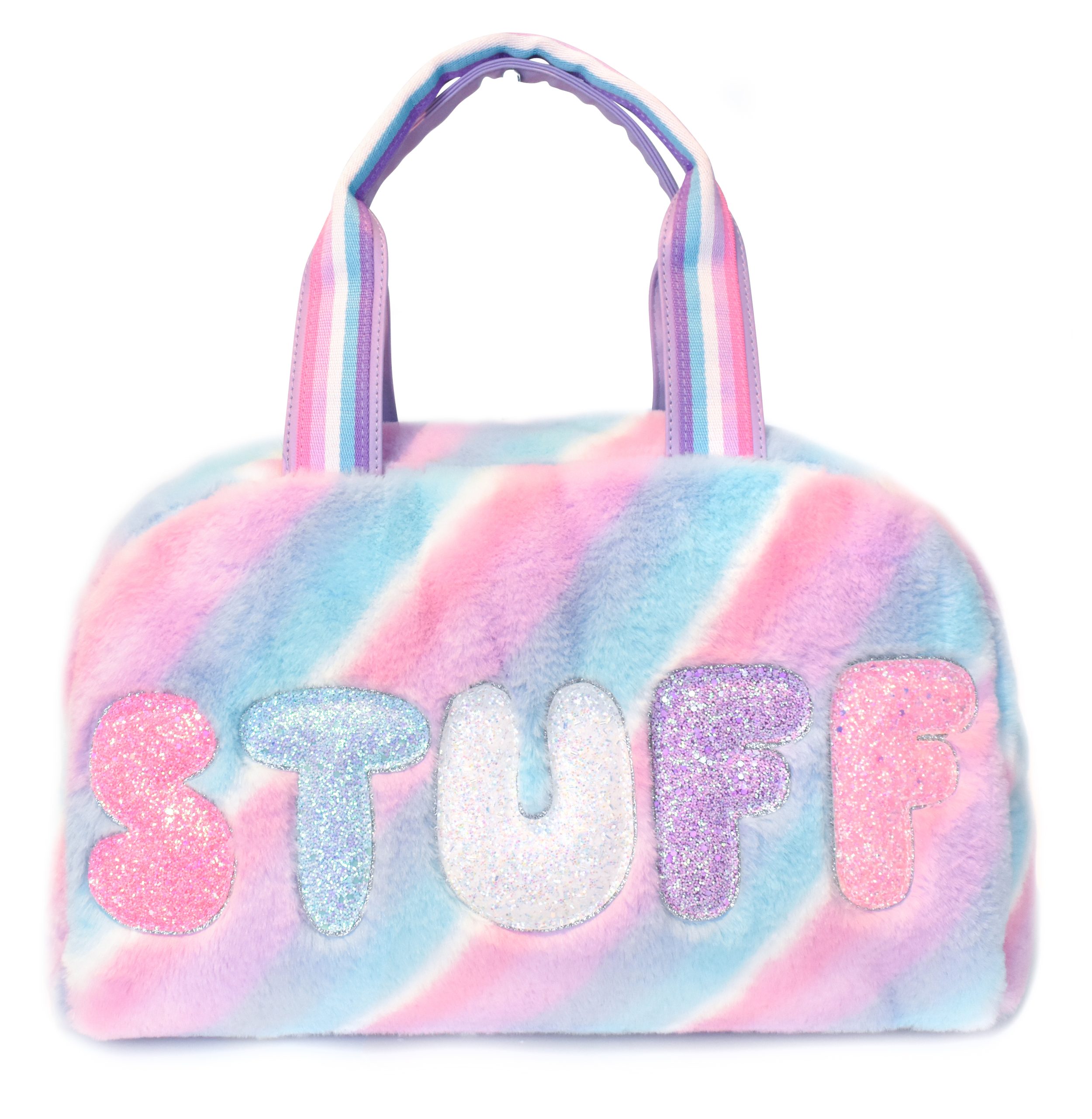 STUFF FAUX FUR MEDIUM DENIM DUFFLE BAG ORCHID
